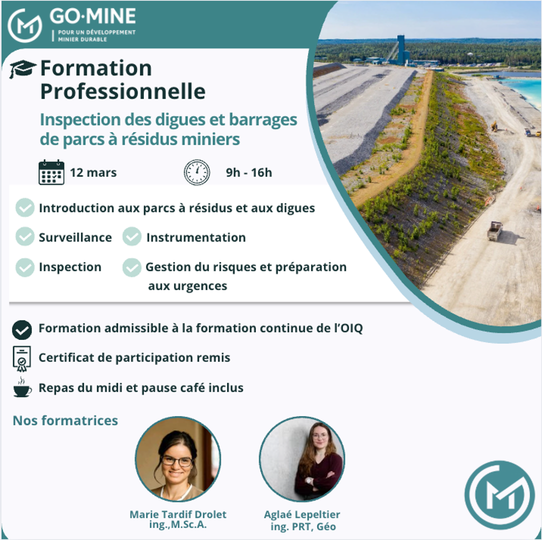 Formation 101 en inspection de digues et barrages de parcs à résidus - 12 mars 2026